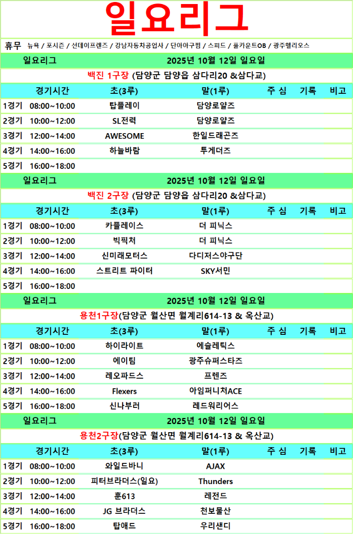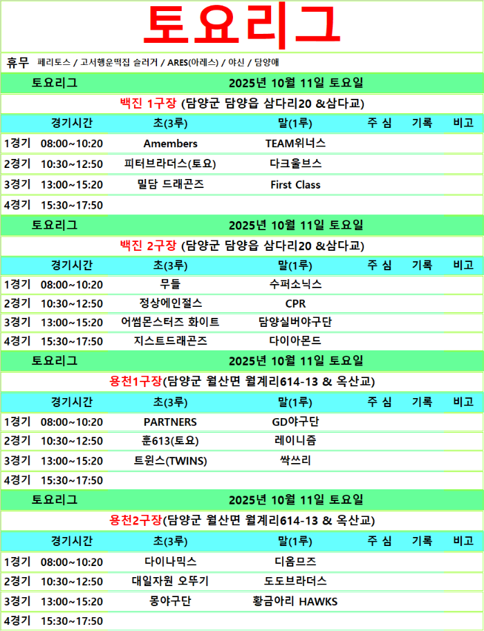 10월 11.12일 경기일정입니다.