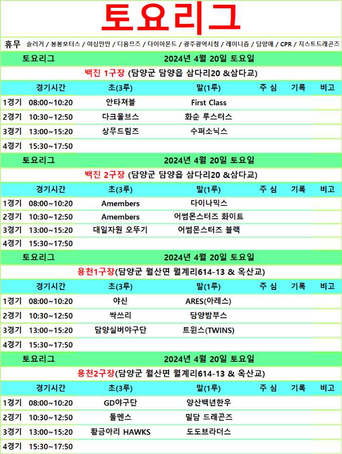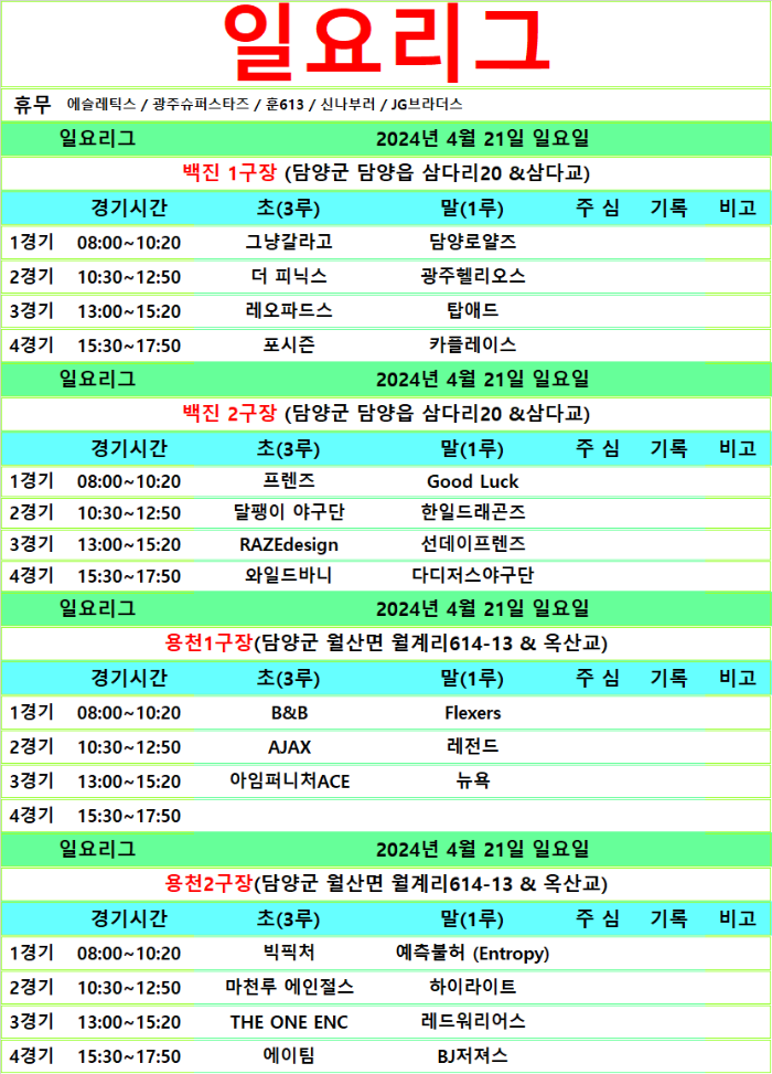 4월 20.21일 경기일정입니다.